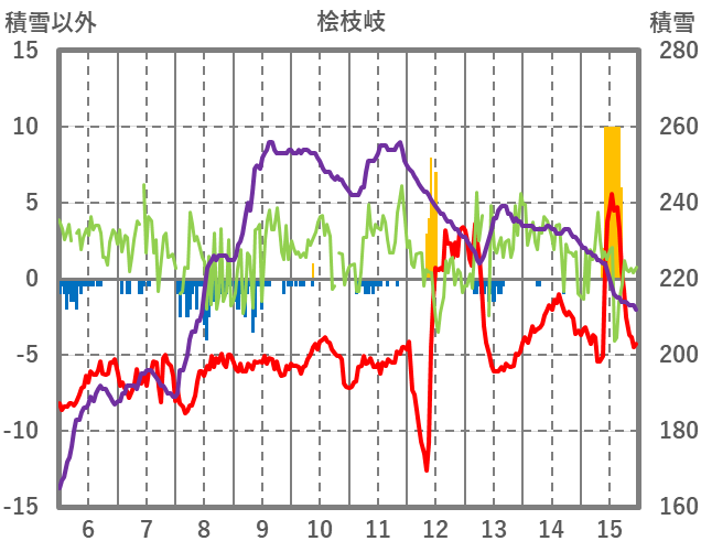 | 日 | 時 | 気温 | 降水 | 風向/風速 | 日照 | 積雪 | 降雪 |