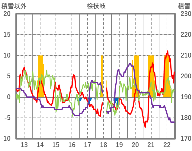 | 日 | 時 | 気温 | 降水 | 風向/風速 | 日照 | 積雪 | 降雪 |