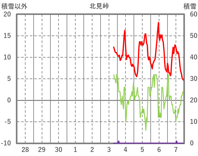 | 日 | 時 | 気温 | 降水 | 風向/風速 | 日照 | 積雪 | 降雪 |