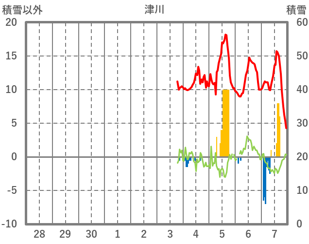 | 日 | 時 | 気温 | 降水 | 風向/風速 | 日照 | 積雪 | 降雪 |
