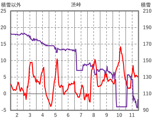 | 日 | 時 | 気温 | 降水 | 風向/風速 | 日照 | 積雪 | 降雪 |