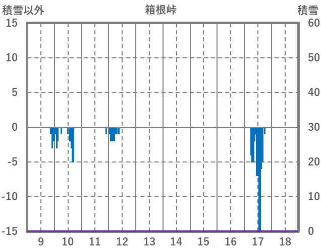 | 日 | 時 | 気温 | 降水 | 風向/風速 | 日照 | 積雪 | 降雪 |