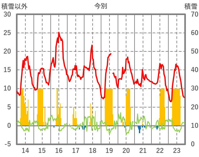 | 日 | 時 | 気温 | 降水 | 風向/風速 | 日照 | 積雪 | 降雪 |