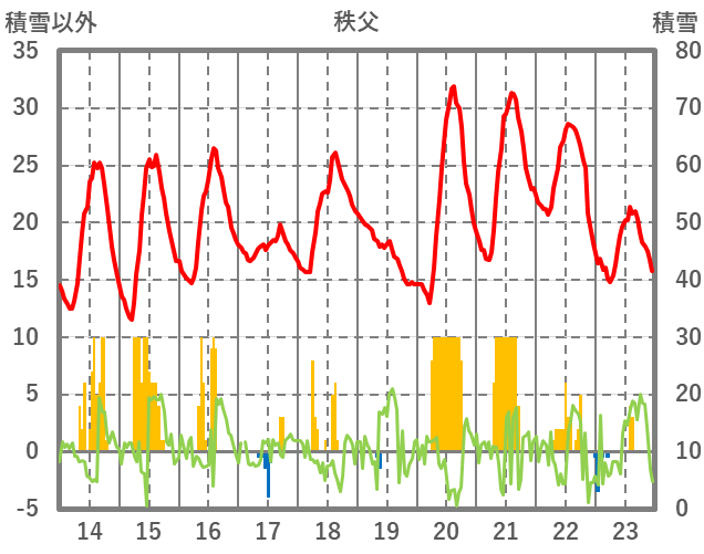 | 日 | 時 | 気温 | 降水 | 風向/風速 | 日照 | 積雪 | 降雪 |