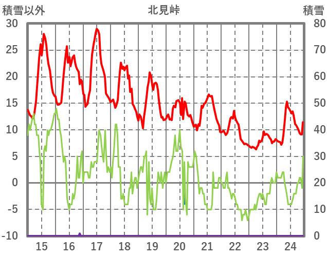 | 日 | 時 | 気温 | 降水 | 風向/風速 | 日照 | 積雪 | 降雪 |