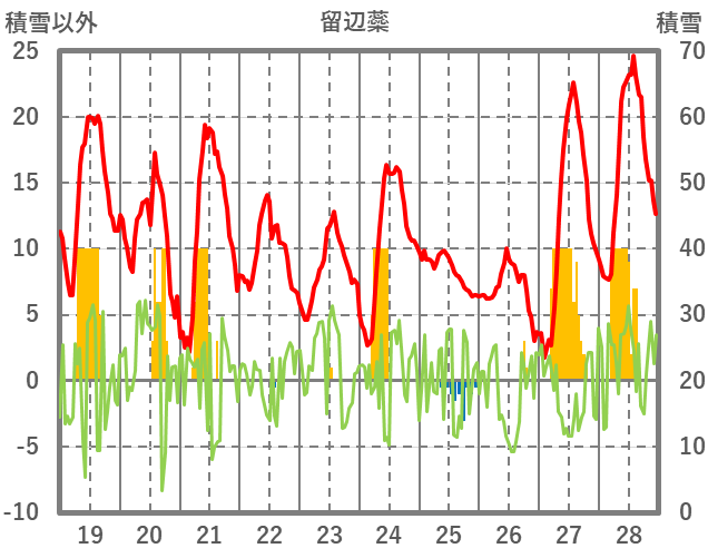 | 日 | 時 | 気温 | 降水 | 風向/風速 | 日照 | 積雪 | 降雪 |