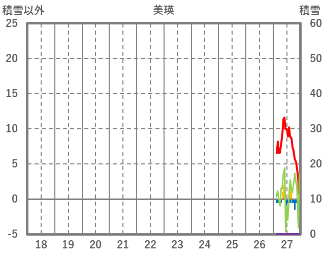 | 日 | 時 | 気温 | 降水 | 風向/風速 | 日照 | 積雪 | 降雪 |