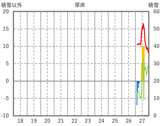 | 日 | 時 | 気温 | 降水 | 風向/風速 | 日照 | 積雪 | 降雪 |