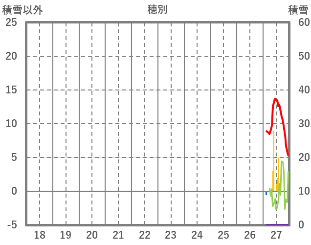| 日 | 時 | 気温 | 降水 | 風向/風速 | 日照 | 積雪 | 降雪 |