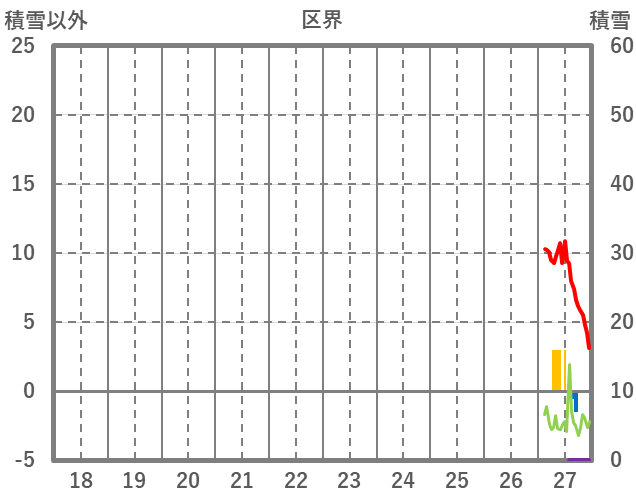 | 日 | 時 | 気温 | 降水 | 風向/風速 | 日照 | 積雪 | 降雪 |