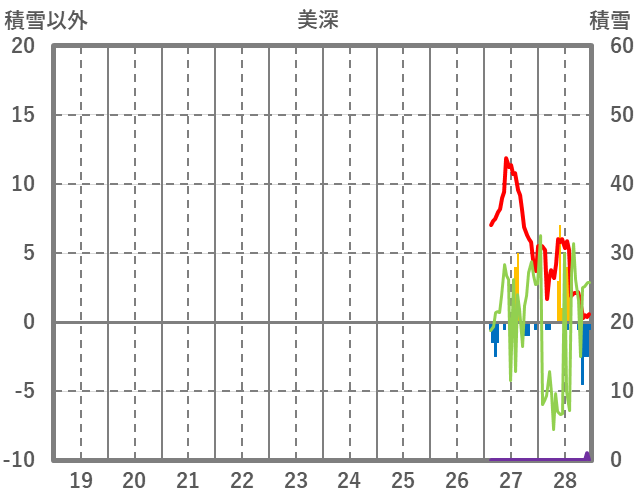 | 日 | 時 | 気温 | 降水 | 風向/風速 | 日照 | 積雪 | 降雪 |