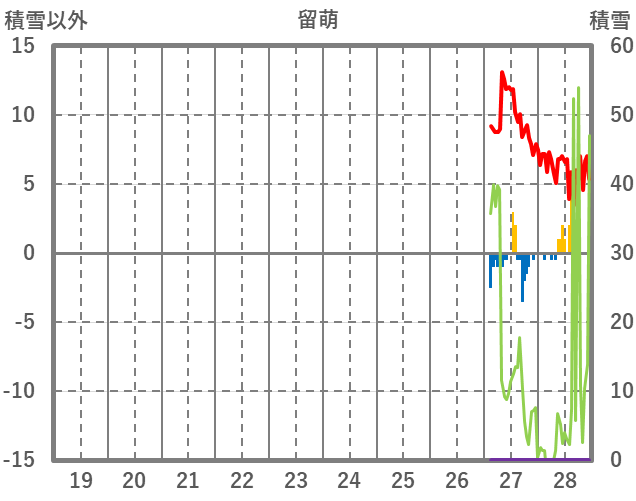 | 日 | 時 | 気温 | 降水 | 風向/風速 | 日照 | 積雪 | 降雪 |