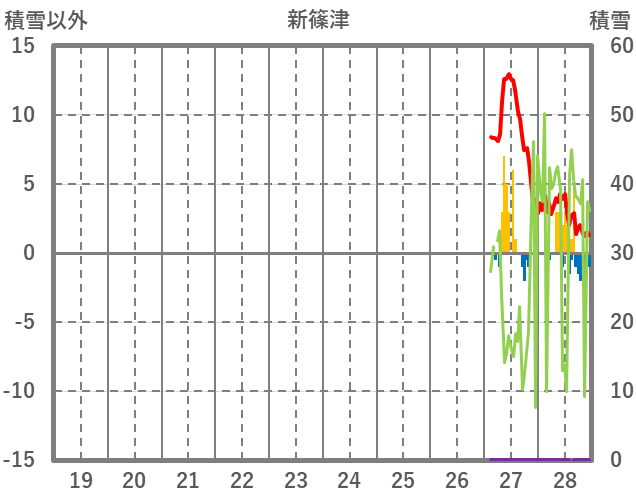 | 日 | 時 | 気温 | 降水 | 風向/風速 | 日照 | 積雪 | 降雪 |