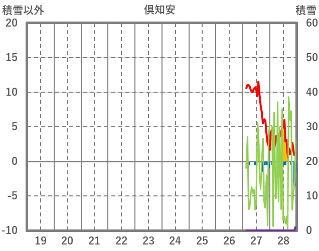| 日 | 時 | 気温 | 降水 | 風向/風速 | 日照 | 積雪 | 降雪 |