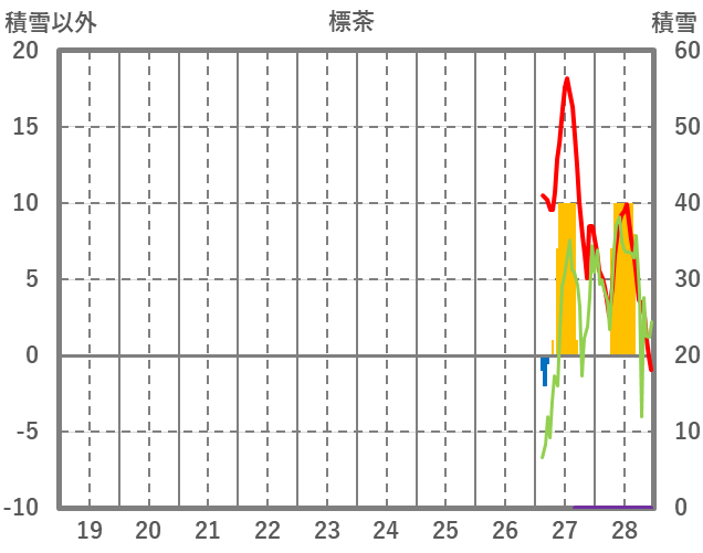 | 日 | 時 | 気温 | 降水 | 風向/風速 | 日照 | 積雪 | 降雪 |