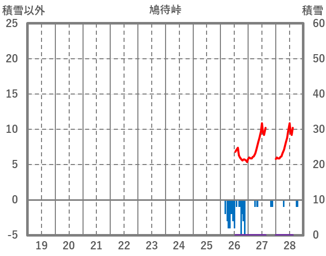 | 日 | 時 | 気温 | 降水 | 風向/風速 | 日照 | 積雪 | 降雪 |