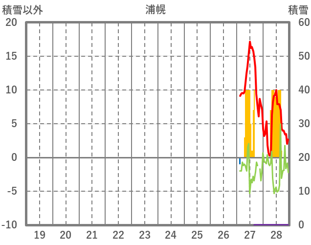 | 日 | 時 | 気温 | 降水 | 風向/風速 | 日照 | 積雪 | 降雪 |