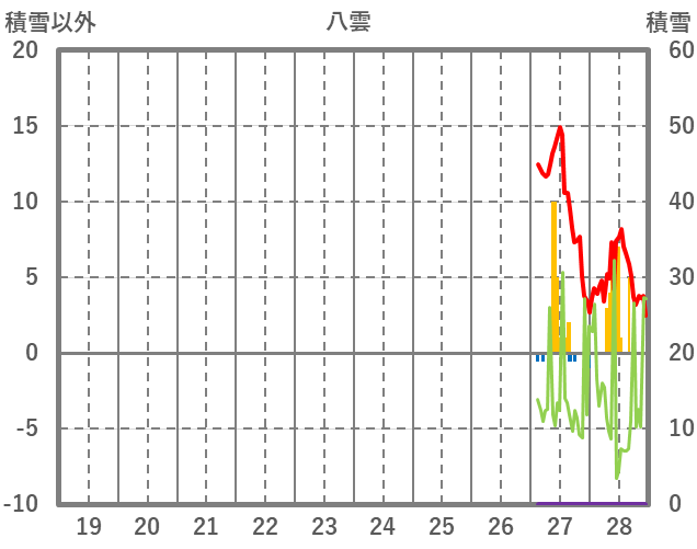 | 日 | 時 | 気温 | 降水 | 風向/風速 | 日照 | 積雪 | 降雪 |