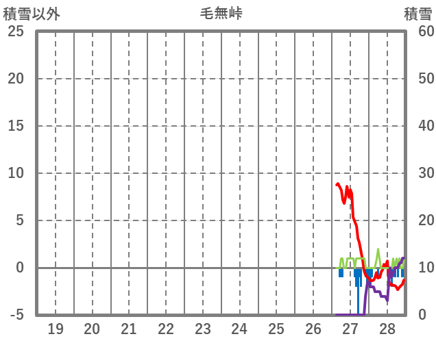 | 日 | 時 | 気温 | 降水 | 風向/風速 | 日照 | 積雪 | 降雪 |