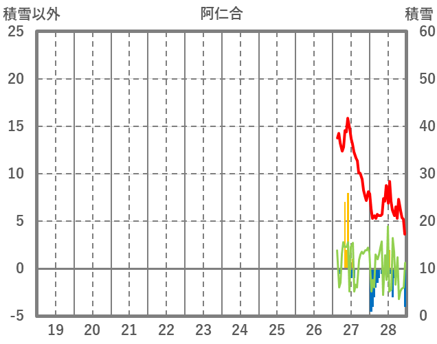 | 日 | 時 | 気温 | 降水 | 風向/風速 | 日照 | 積雪 | 降雪 |