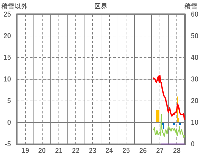 | 日 | 時 | 気温 | 降水 | 風向/風速 | 日照 | 積雪 | 降雪 |