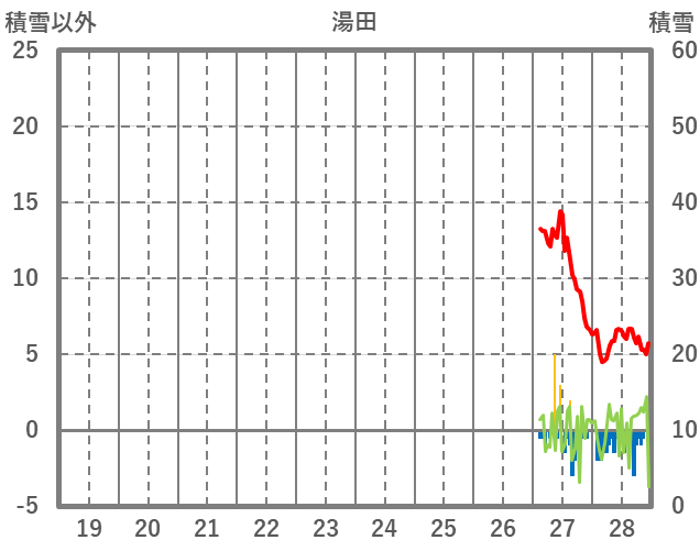 | 日 | 時 | 気温 | 降水 | 風向/風速 | 日照 | 積雪 | 降雪 |