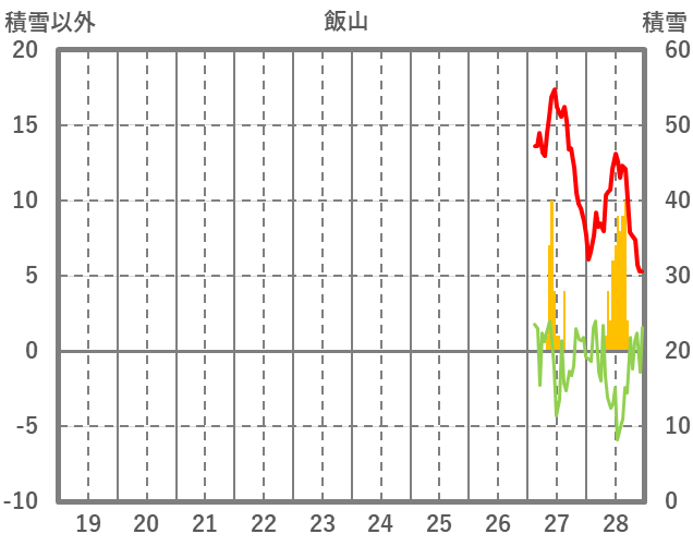 | 日 | 時 | 気温 | 降水 | 風向/風速 | 日照 | 積雪 | 降雪 |