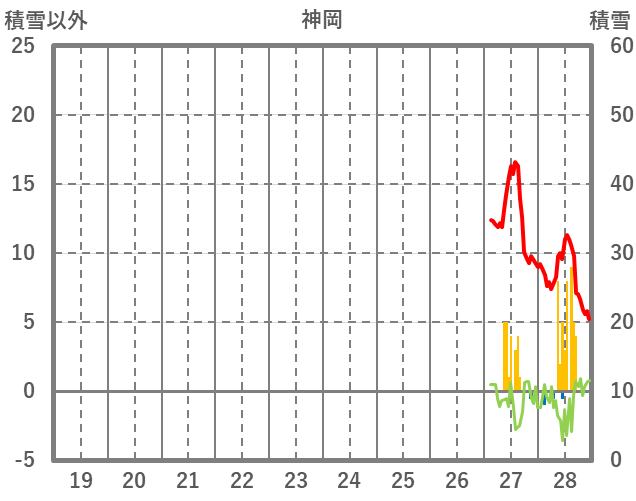 | 日 | 時 | 気温 | 降水 | 風向/風速 | 日照 | 積雪 | 降雪 |