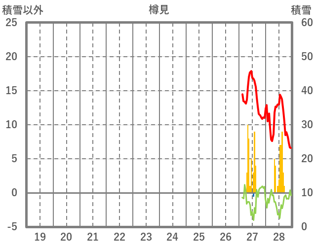 | 日 | 時 | 気温 | 降水 | 風向/風速 | 日照 | 積雪 | 降雪 |