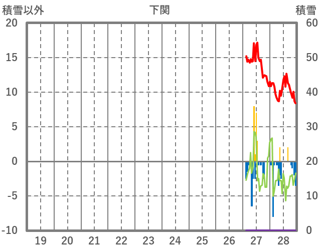 | 日 | 時 | 気温 | 降水 | 風向/風速 | 日照 | 積雪 | 降雪 |