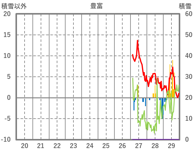 | 日 | 時 | 気温 | 降水 | 風向/風速 | 日照 | 積雪 | 降雪 |