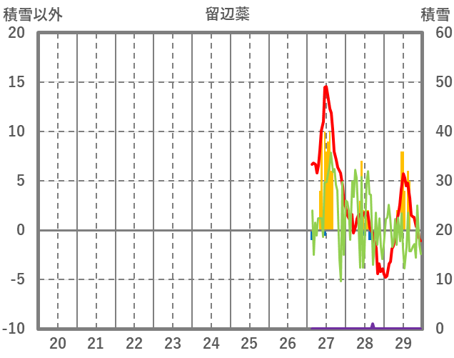 | 日 | 時 | 気温 | 降水 | 風向/風速 | 日照 | 積雪 | 降雪 |