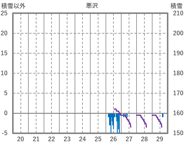 | 日 | 時 | 気温 | 降水 | 風向/風速 | 日照 | 積雪 | 降雪 |