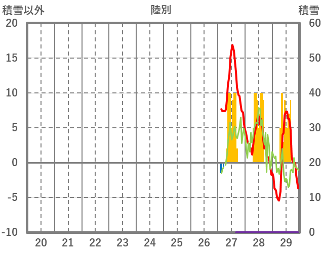 | 日 | 時 | 気温 | 降水 | 風向/風速 | 日照 | 積雪 | 降雪 |