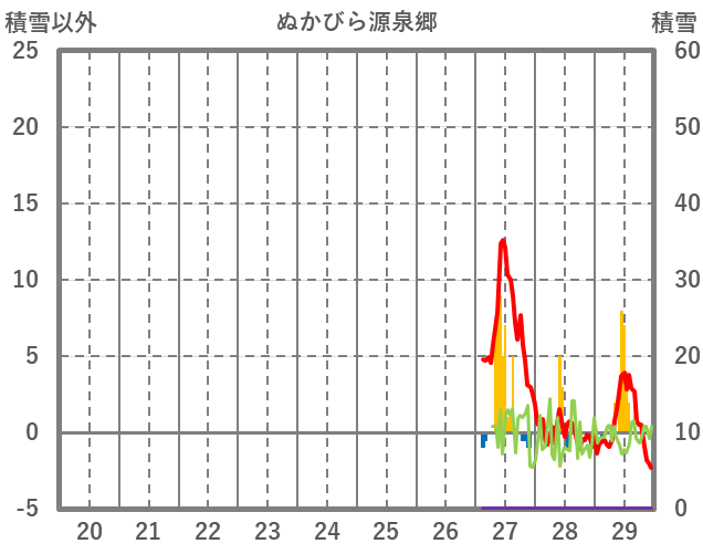 | 日 | 時 | 気温 | 降水 | 風向/風速 | 日照 | 積雪 | 降雪 |