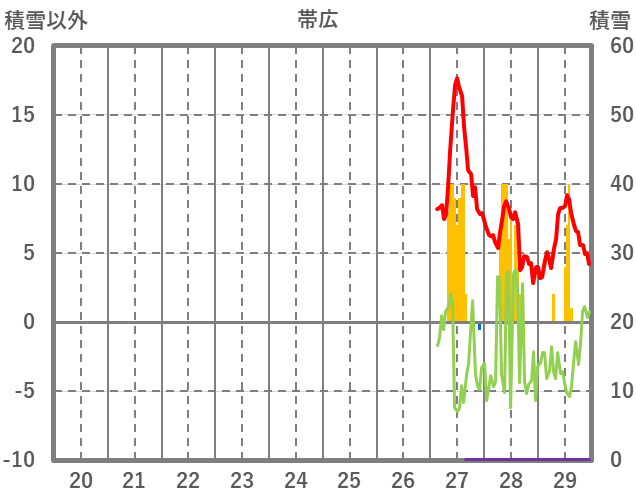 | 日 | 時 | 気温 | 降水 | 風向/風速 | 日照 | 積雪 | 降雪 |