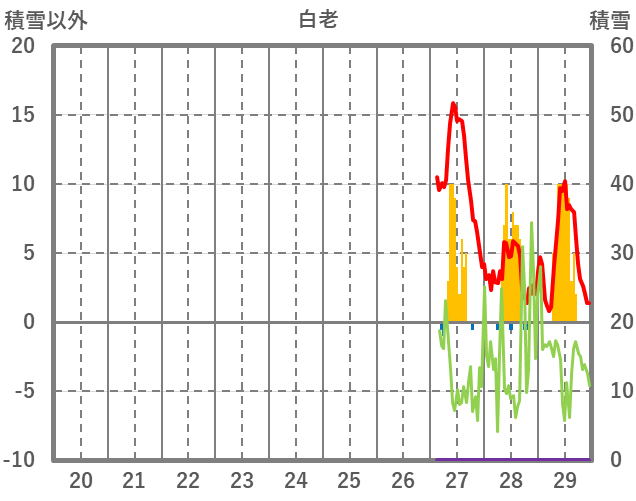 | 日 | 時 | 気温 | 降水 | 風向/風速 | 日照 | 積雪 | 降雪 |