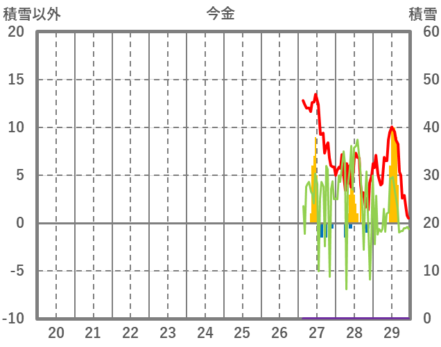 | 日 | 時 | 気温 | 降水 | 風向/風速 | 日照 | 積雪 | 降雪 |
