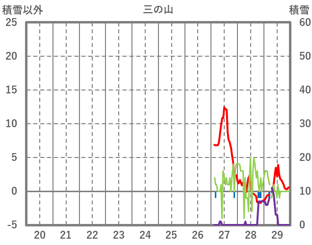 | 日 | 時 | 気温 | 降水 | 風向/風速 | 日照 | 積雪 | 降雪 |