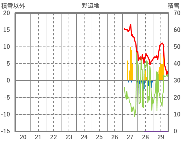 | 日 | 時 | 気温 | 降水 | 風向/風速 | 日照 | 積雪 | 降雪 |