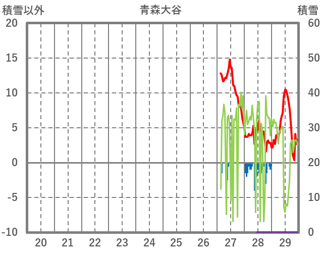 | 日 | 時 | 気温 | 降水 | 風向/風速 | 日照 | 積雪 | 降雪 |