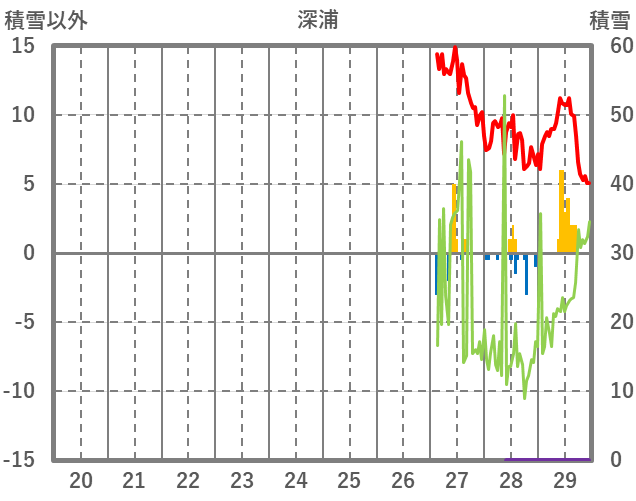 | 日 | 時 | 気温 | 降水 | 風向/風速 | 日照 | 積雪 | 降雪 |