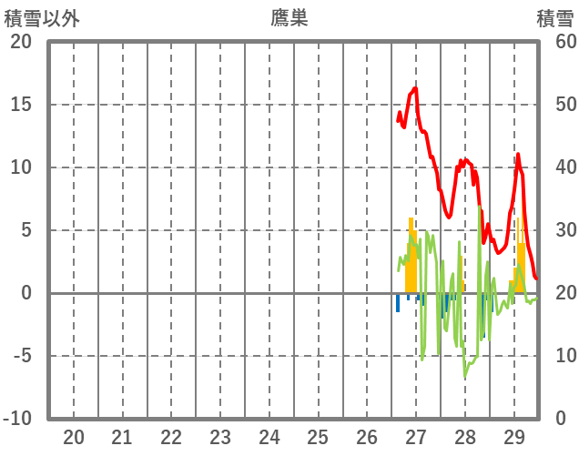 | 日 | 時 | 気温 | 降水 | 風向/風速 | 日照 | 積雪 | 降雪 |