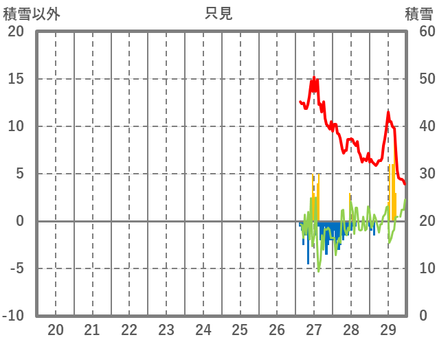 | 日 | 時 | 気温 | 降水 | 風向/風速 | 日照 | 積雪 | 降雪 |