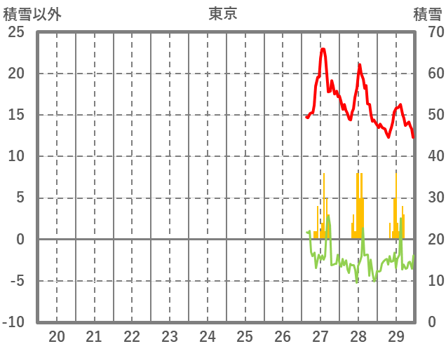 | 日 | 時 | 気温 | 降水 | 風向/風速 | 日照 | 積雪 | 降雪 |