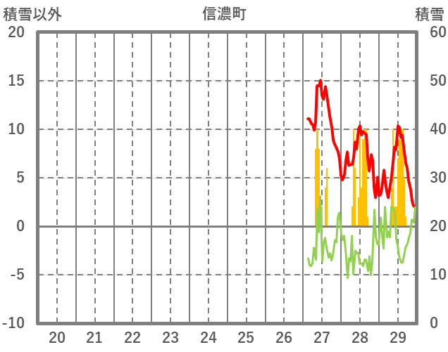 | 日 | 時 | 気温 | 降水 | 風向/風速 | 日照 | 積雪 | 降雪 |