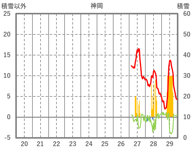| 日 | 時 | 気温 | 降水 | 風向/風速 | 日照 | 積雪 | 降雪 |