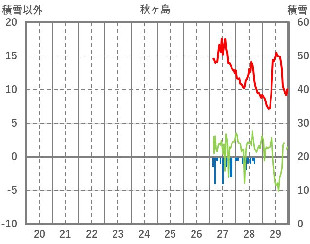 | 日 | 時 | 気温 | 降水 | 風向/風速 | 日照 | 積雪 | 降雪 |