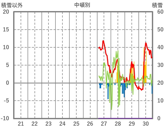 | 日 | 時 | 気温 | 降水 | 風向/風速 | 日照 | 積雪 | 降雪 |