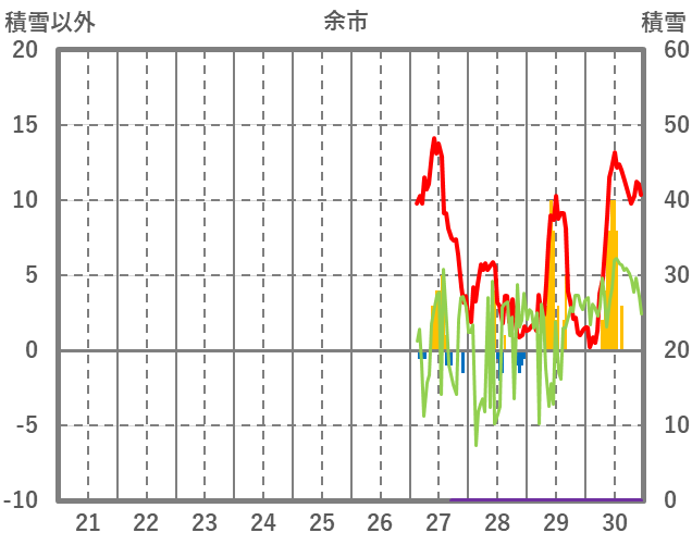 | 日 | 時 | 気温 | 降水 | 風向/風速 | 日照 | 積雪 | 降雪 |